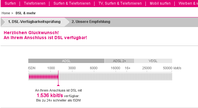 Seit November 2006 sind in Thandorf immerhin Angebote verfügbar, die bis zu 2 Megabit in der Sekunde pro Anschluß versprechen. Was dahinter steht, sieht man in der Grafik. Was man auch sehen kann, sind die Möglichkeiten, die es anderswo gibt - mit VDSL geht mehr als das 30-fache. Sicher, das Angebot steht bisher nur in größeren Städten, und die Technik rechnet sich nicht überall. Aber von einer Firma, die sich ihr Monopol auf der "letzten Meile" zum Telefonkunden noch immer vom Steuerzahler alimentieren lässt, sollte man durchaus mehr verlangen dürfen. Will man hier vor Ort Arbeitsplätze schaffen, dann reicht es dafür heute nicht mehr, auf den Autobahnanschluß in Schönberg oder Lüdersdorf zu verweisen und billigen Baugrund anzubieten. Betriebe, deren Arbeit heute im wesentlichen im Büro stattfindet, sind auf ein solides Breitbandangebot angewiesen. Hier ist ein guter Ansatz für eine sinnvolle Infrastrukturpolitik - gerade im Hinblick auf die Investitionsmöglichkeiten, die im Zuge der Eindämmung der Finanzkrise geschaffen werden. Insbesondere vor dem Hintergrund der anstehenden Kommunalwahlen werden sich Mandatsträger sowohl im Amt als auch im Landkreis fragen lassen müssen, wieweit sie ihren Einfluss geltend machen, um für Fortschritte auf diesem Gebiet zu sorgen.