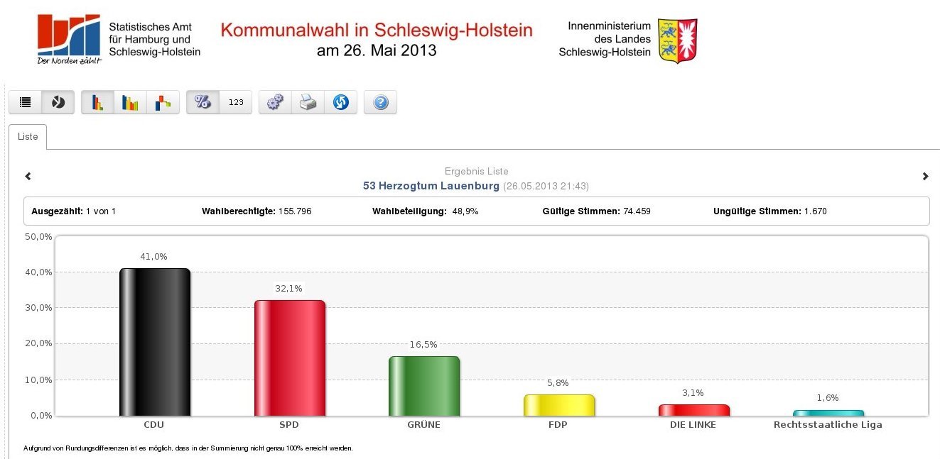...waren anscheinend nicht mal für die dortigen Wähler interessant - die Wahlbeteiligung war nicht gerade berauschend: im Herzogzum Lauenburg wählte nicht einmal jeder zweite.