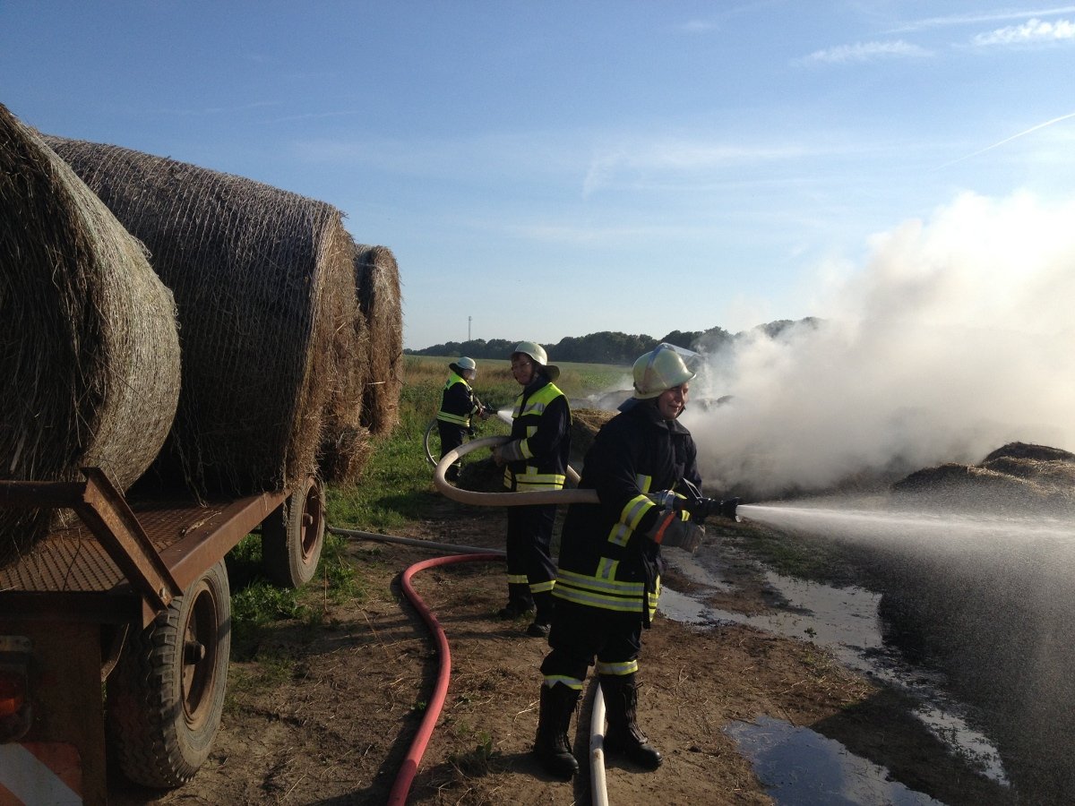 Am Samstag Morgen gegen 7.00 Uhr kam der Alarm: eine Strohmiete in Rieps stand in Flammen.
