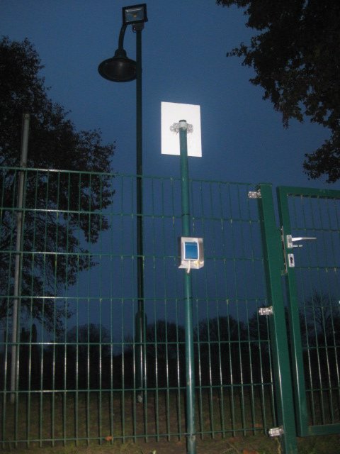 Wenn die Straßenlaternen sich anschalten, kann auch das Flutlicht zum Spielplatz eingeschaltet werden. Nach 40 Minuten schaltet es sich automatisch wieder aus. Dadurch wird kein unnötiger Strom verbraucht. Der Schalter befindet sich nahe dem 2. Tor. Nun kann auch zur dunklen Jahreszeit der Spielplatz genutzt werden. Damit wurde eine Bitte realisiert, die durch die Umfrage "Ihre drei Wünsche an die Gemeinde" an die Bürger aufgelistet war.