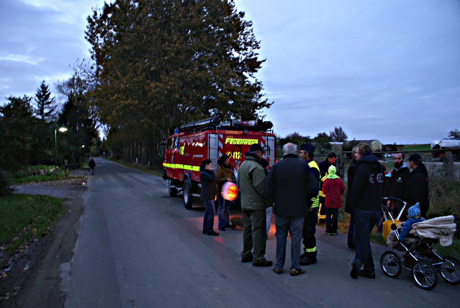Mit Einsetzen der Dämmerung um 18:30 setzte sich der Laternenumzug vom Neubau aus in Bewegung.