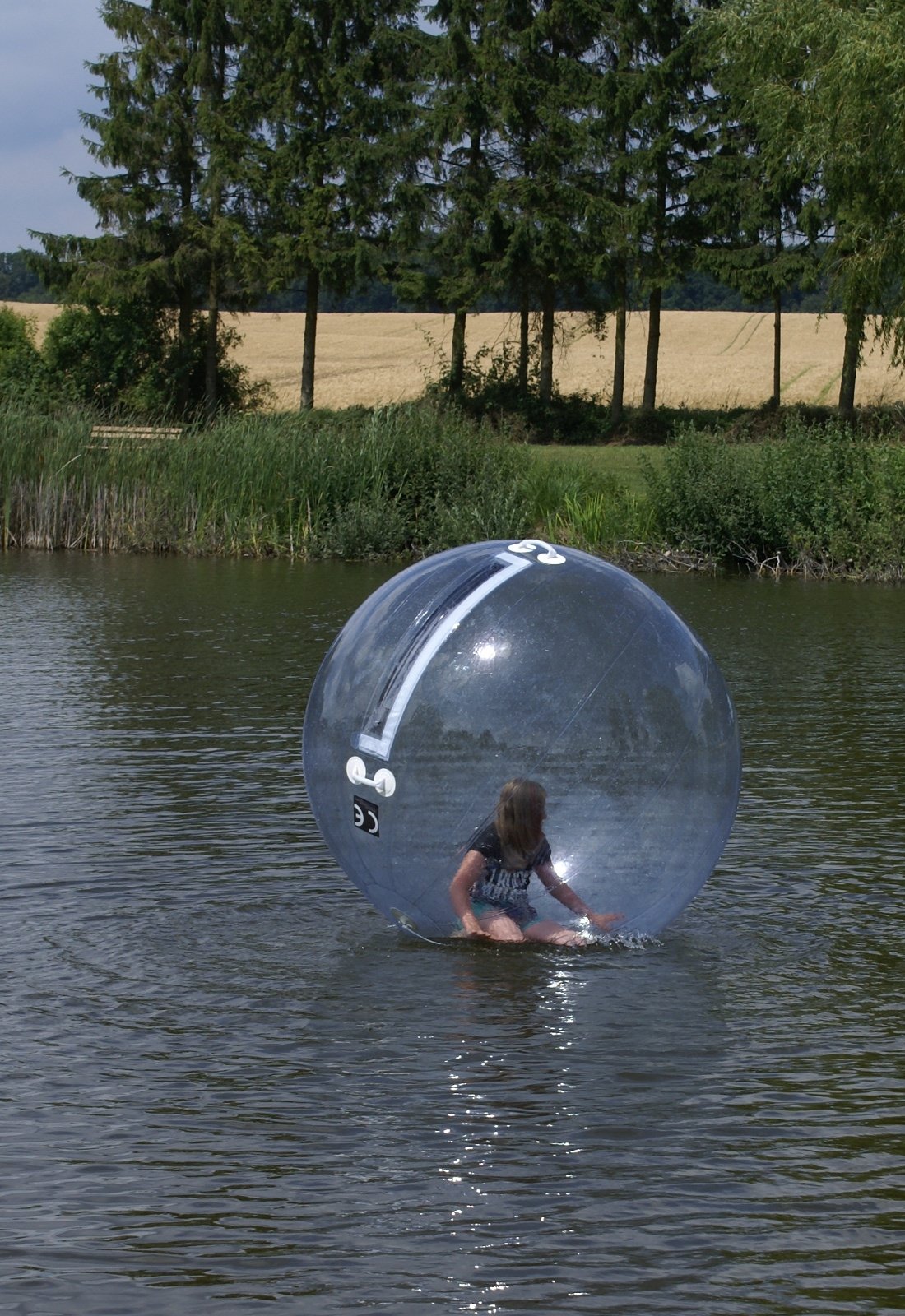 Der Bauernteich wird um eine weitere Attraktion reicher: man kann jetzt auch im Laufball darüberschweben.