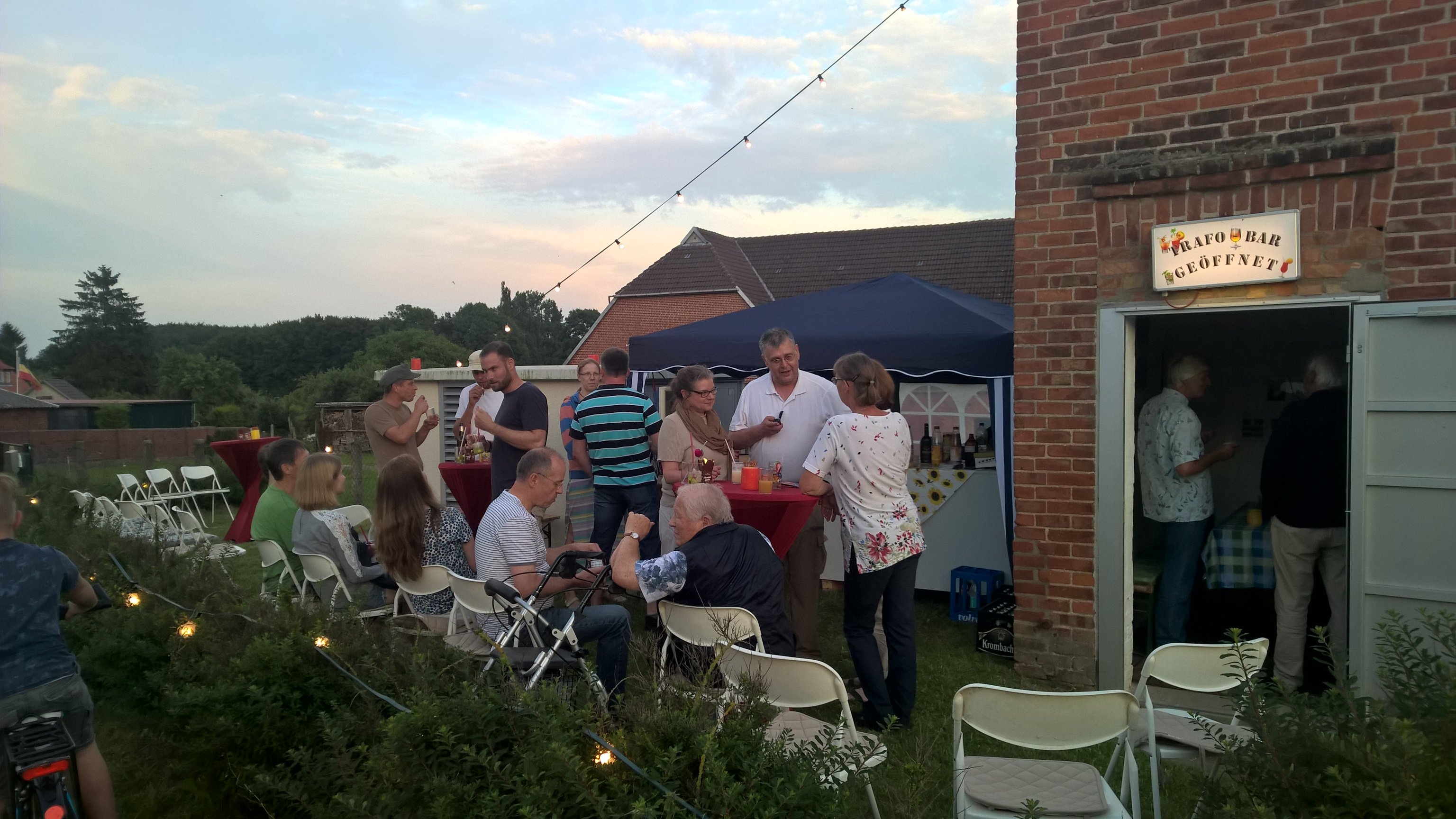 Wer kam, erlebte einen angenehm lauschigen Sommerabend, konnte neue Nachbarn kennenlernen und sich mit Caipirinha und Prince-Cocktails verwöhnen. Natürlich gab es auch sonst alles, was zu einer Bar gehört, von Bier und Wein bis hin zu Mineralwasser und Cola. Die Bezahlung erfolgt dabei üblicherweise über eine Spendenbox, damit der Dorfverein seine Vorleistung decken kann. Was soll man sagen - die Trafobar etabliert sich, offensichtlich. Die nächste Bar ist am 8. Oktober am Thandorfer Trafoturm.