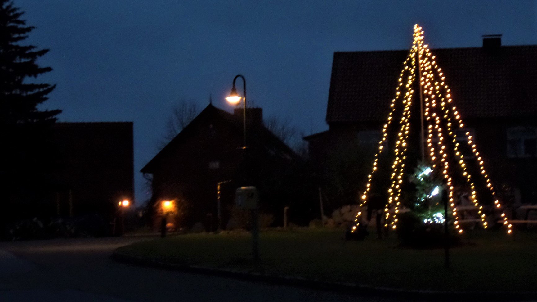 Seit dem späten Nachmittag des 1. Dezember leuchtet wieder ein Weihnachtsbaum im Dorf.