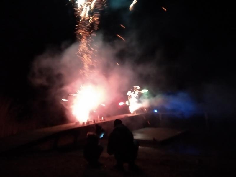 Trotz Wind und Kälte wurde die Dunkelheit erleuchtet - wenn auch immer nur für Sekunden. Zum Aufwärmen gab es alte Waschmaschinentrommeln, in denen fröhlich Feuerchen loderten. Und nette Gespräche unter den Zuschauern. Dass das Feuerwerk "gut geknallt hat", belegen die Bilder, die heute die Redaktion erreichten. Vielen Dank, Jörg!