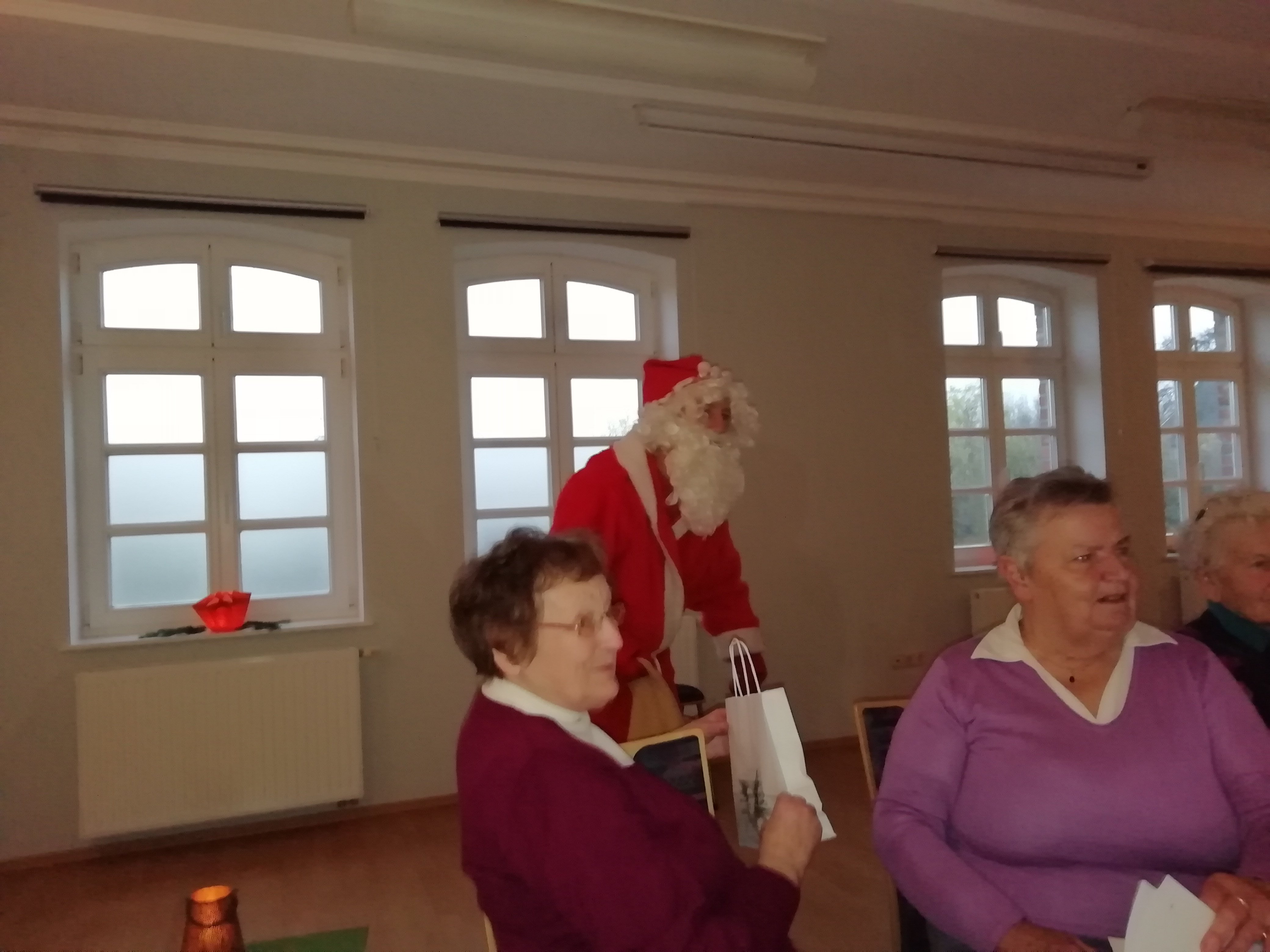 Wie auch den Jahren zuvor kommt in Thandorf der Weihnachtsmann nicht nur zu den Kindern, sondern auch zu den Senioren. Sie erhielten nach einer vollbrachten Leistung wie Gedichte aufsagen oder Weihnachtslieder anstimmen eine kleine Geschenketüte mit Süßwaren und einem eigens für die Feier gebastelten Fröbelstern.