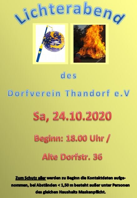 gilt natürlich und ganz besonders auch hier, denn selbstverständlich findet diese Veranstaltung des Dorfverein Thandorf e.V. unter den Vorgaben und Maßgaben, die der derzeitigen Gesamtsituation geschuldet sind, statt! Alle sollen sich sicher aufgehoben fühlen - und das erfordert, dass jeder auf sich und auf den anderen achtet. Es gilt der Abstand (außer unter Mitgliedern eines Haushalts), es gilt, wo immer das kurzzeitig nicht machbar ist, die Pflicht zum Schnutenpulli, und es gilt die Dokumentationspflicht der Teilnehmer und Teilnehmerinnen.