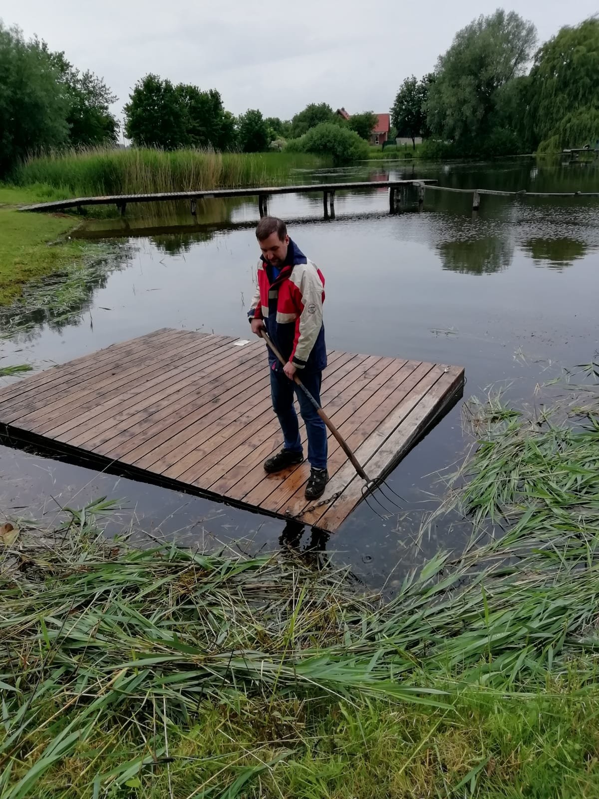 Fleißige Hände hübschen Teich und Badestelle für alle auf