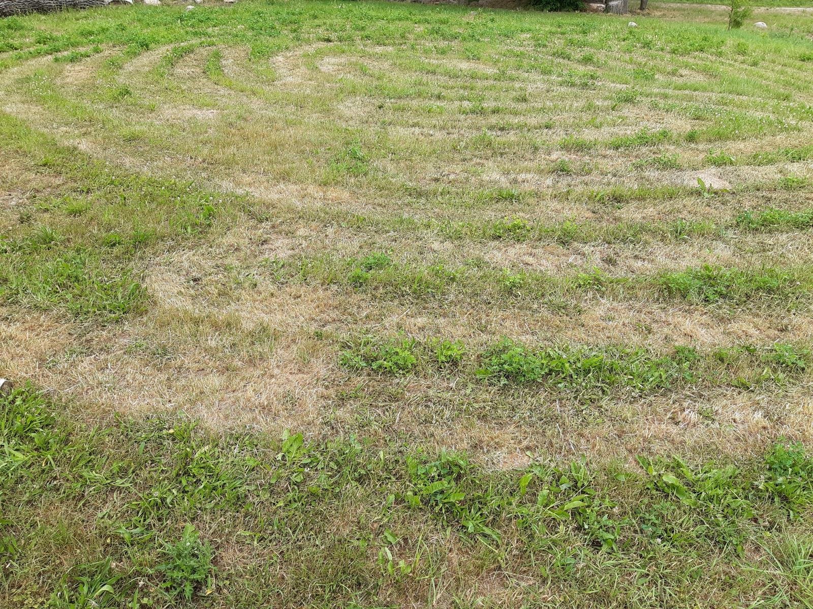 Im Jahr 2020 gingen dann einige Thandorfer Einwohner ans Aufräumen. Die großen Stämme wurden beiseitegeschoben oder zu Brennholz verarbeitet. Die Löcher wurden mit Mutterboden zu gemacht und die Unebenheiten wurden auch mit Mutterboden egalisiert. Dann konnte sich die Wiese ein ganzes Jahr erholen und wurde nur ab und zu mal gemäht. Nun im Juni 2021 ist es wieder soweit: Das Labyrinth am Thandorfer Bauernteich wurde wieder zu neuem Leben erweckt!