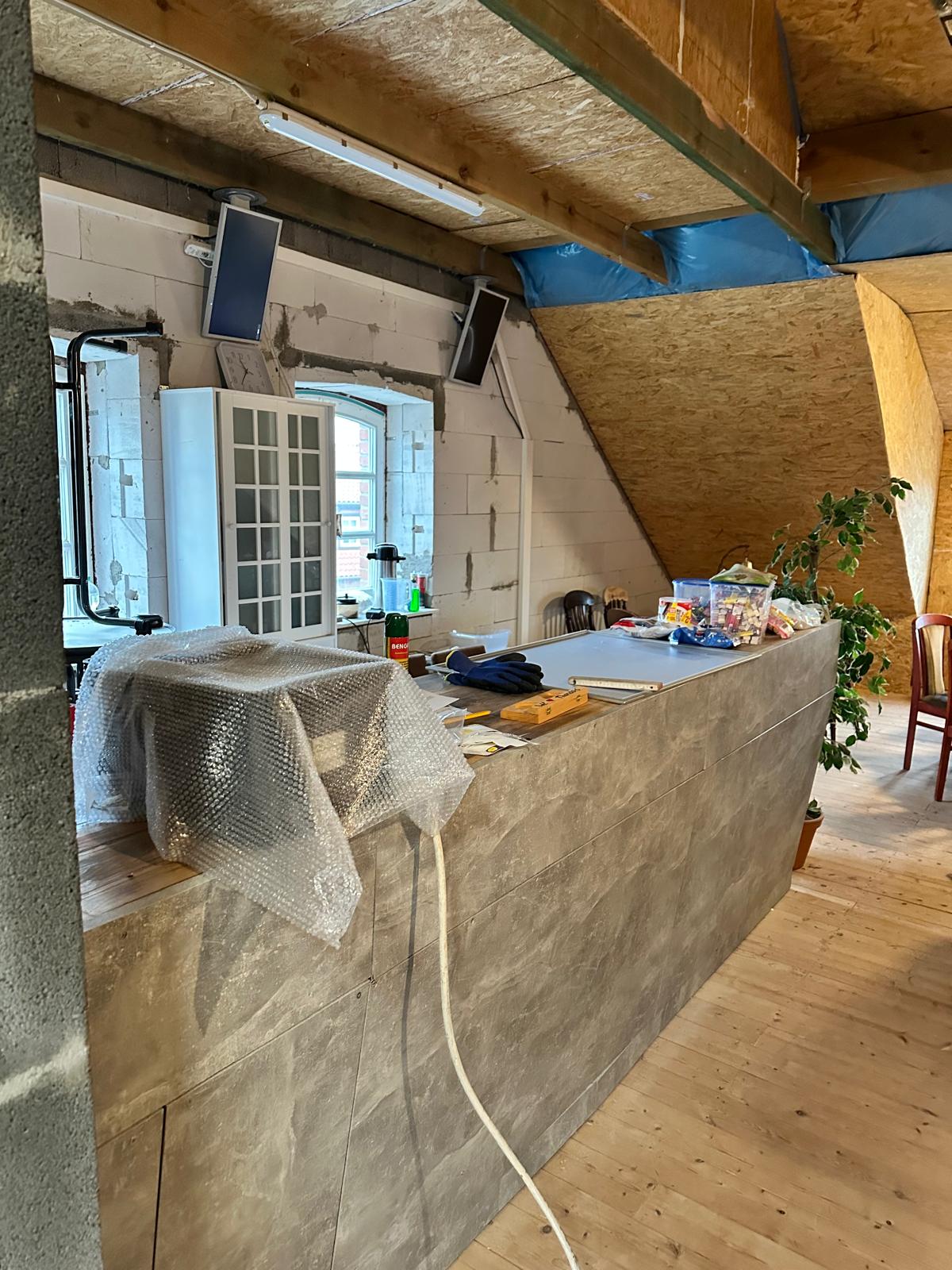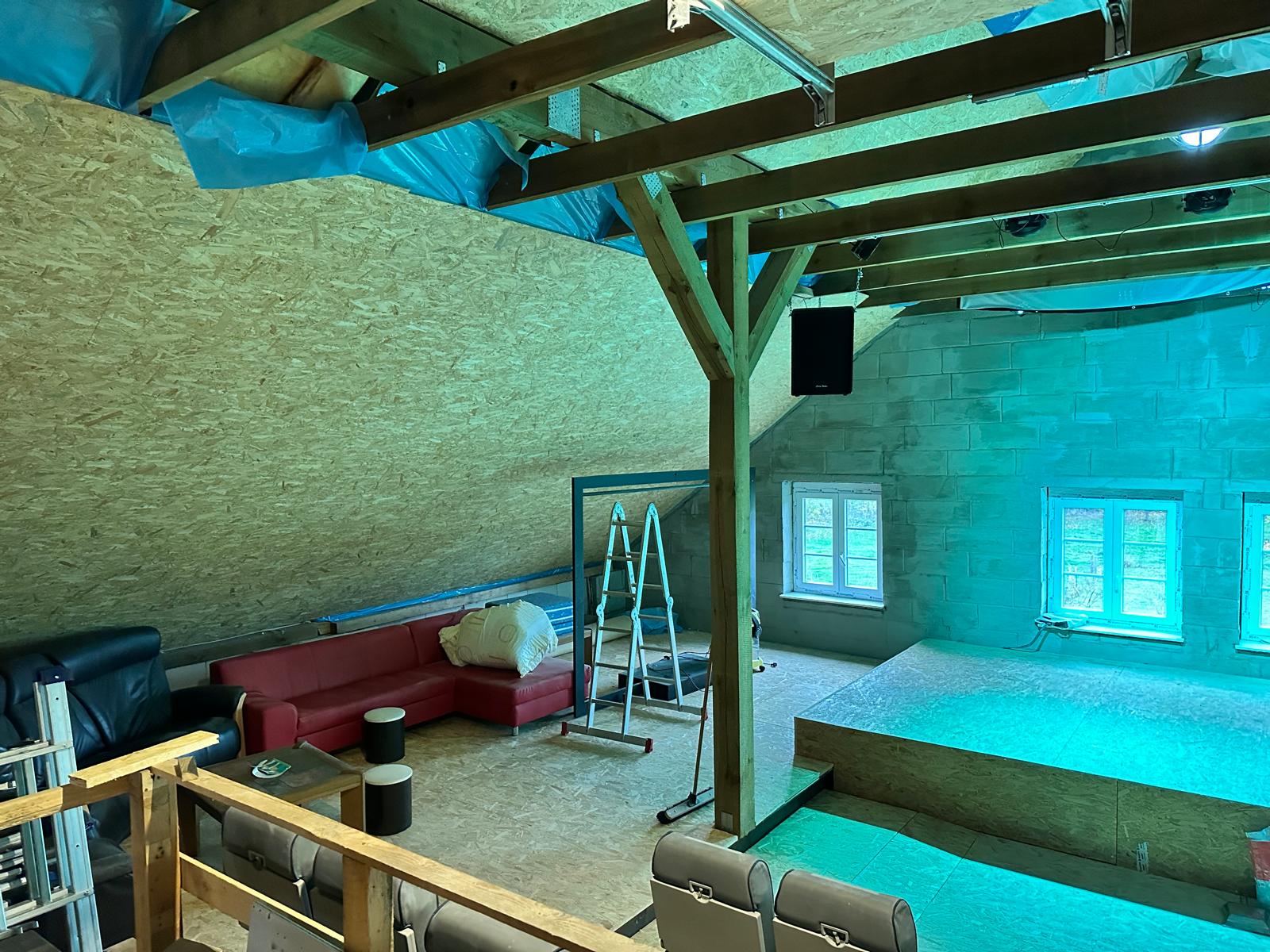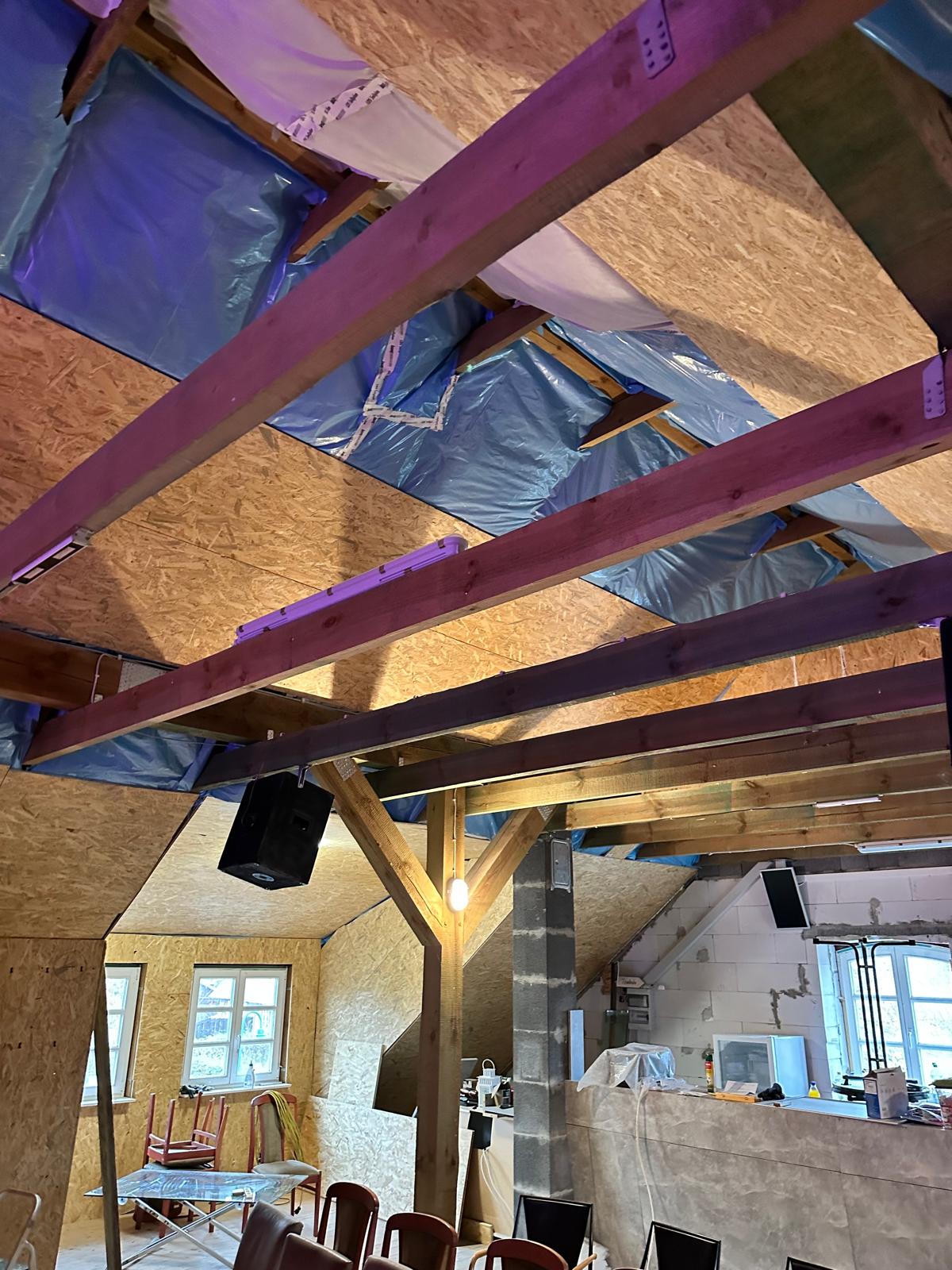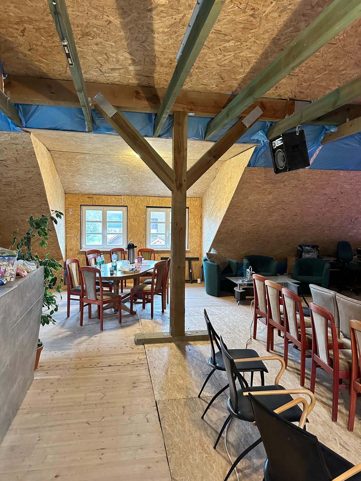 Der Clubraum bietet nach der Dämmung eine einladende Kulisse: warmes Licht und gemütliche Sitzgelegenheiten im Baustellenstil. Wir möchten allen danken, die zum Gelingen beigetragen haben – von den Handwerkern über die Helferkreise bis hin zu denen, die den Dorfverein auch finanziell unterstützt haben, um den Clubraum zu diesem Etappenziel zu verhelfen.