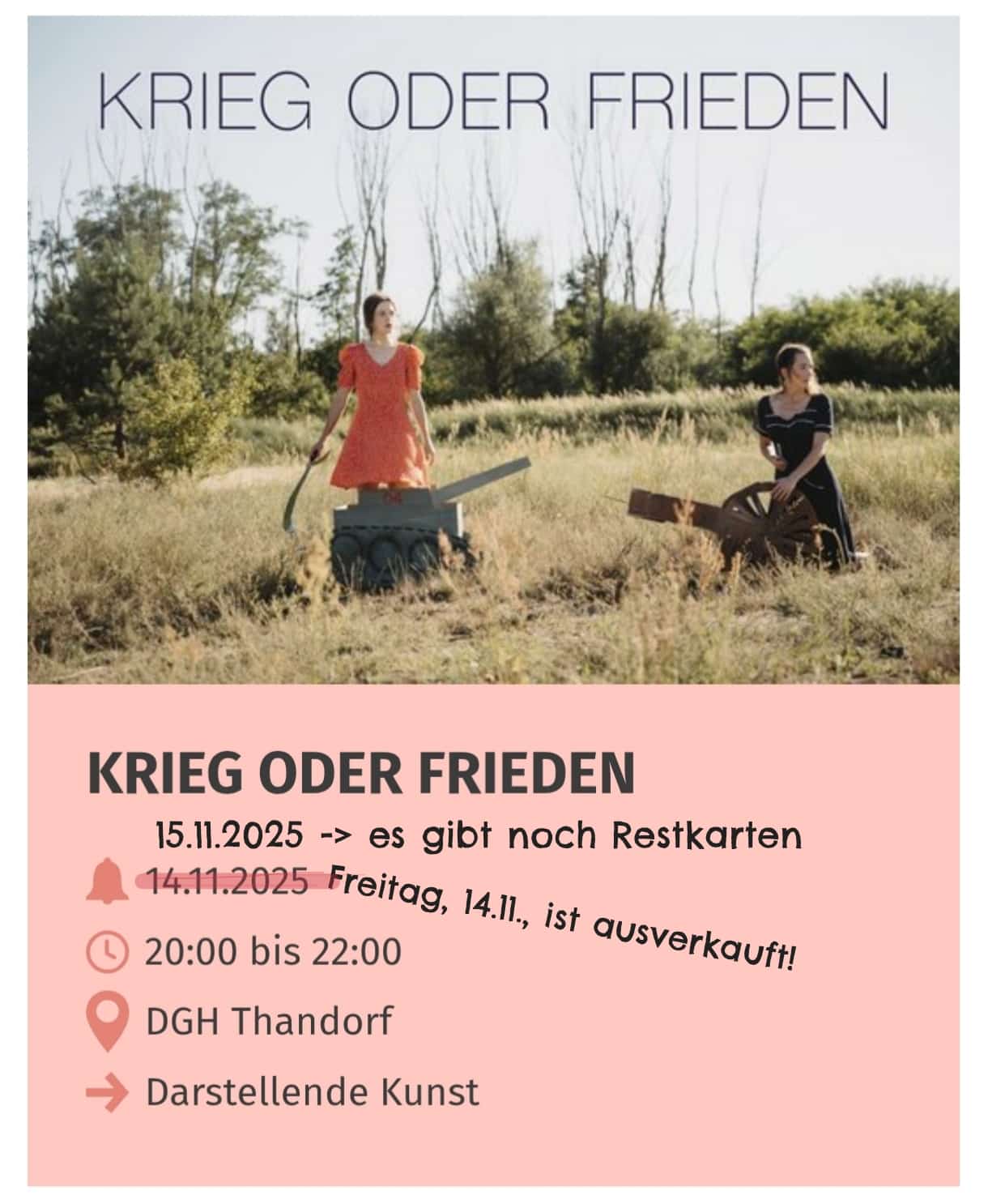 Einen ersten Eindruck kann man bereits am kommenden Wochenende erlangen. Wie bereits bekanntgegeben, wird die erste Veranstaltung am 14. und 15.11.2025 stattfinden. Zu diesen beiden Theaterveranstaltungen gibt es bereits eine tolle und beruhigende Nachfrage. Es gibt noch ein paar Eintrittskarten. Die Nachfrage nach diesen zwei Abenden ist auch über die Grenzen der Gemeinde geschwappt. So haben wir Ticketbestellungen aus den umliegenden Gemeinden und zusätzlich haben sich bereits erste öffentliche Medien zu den Veranstaltungen angekündigt.