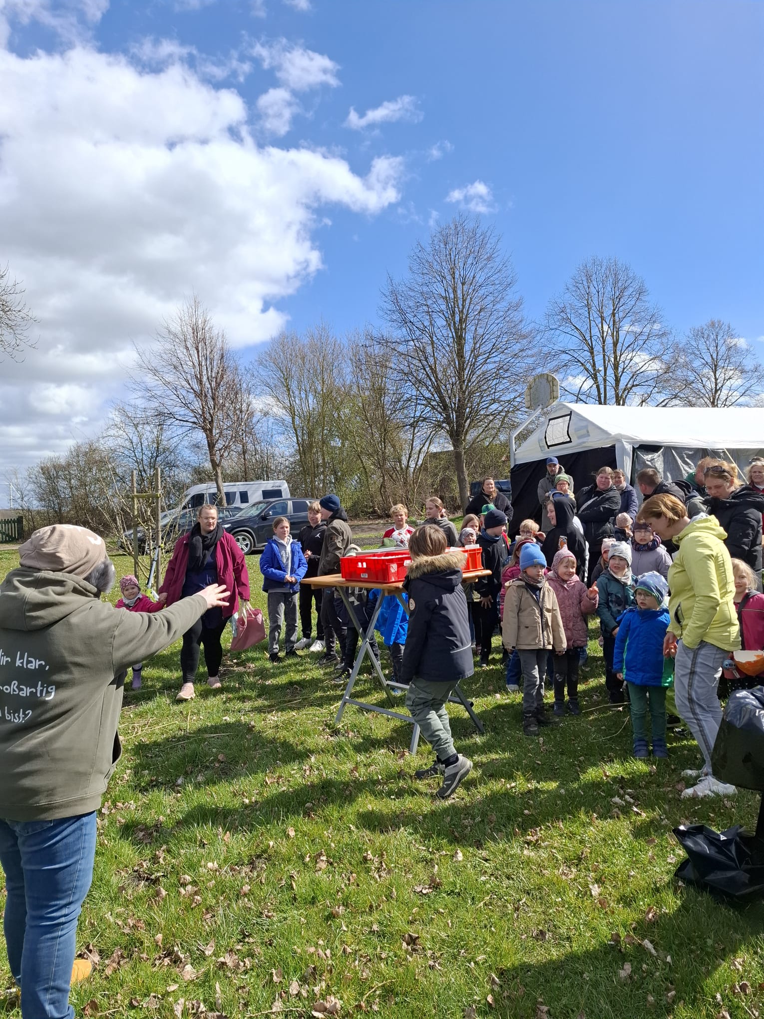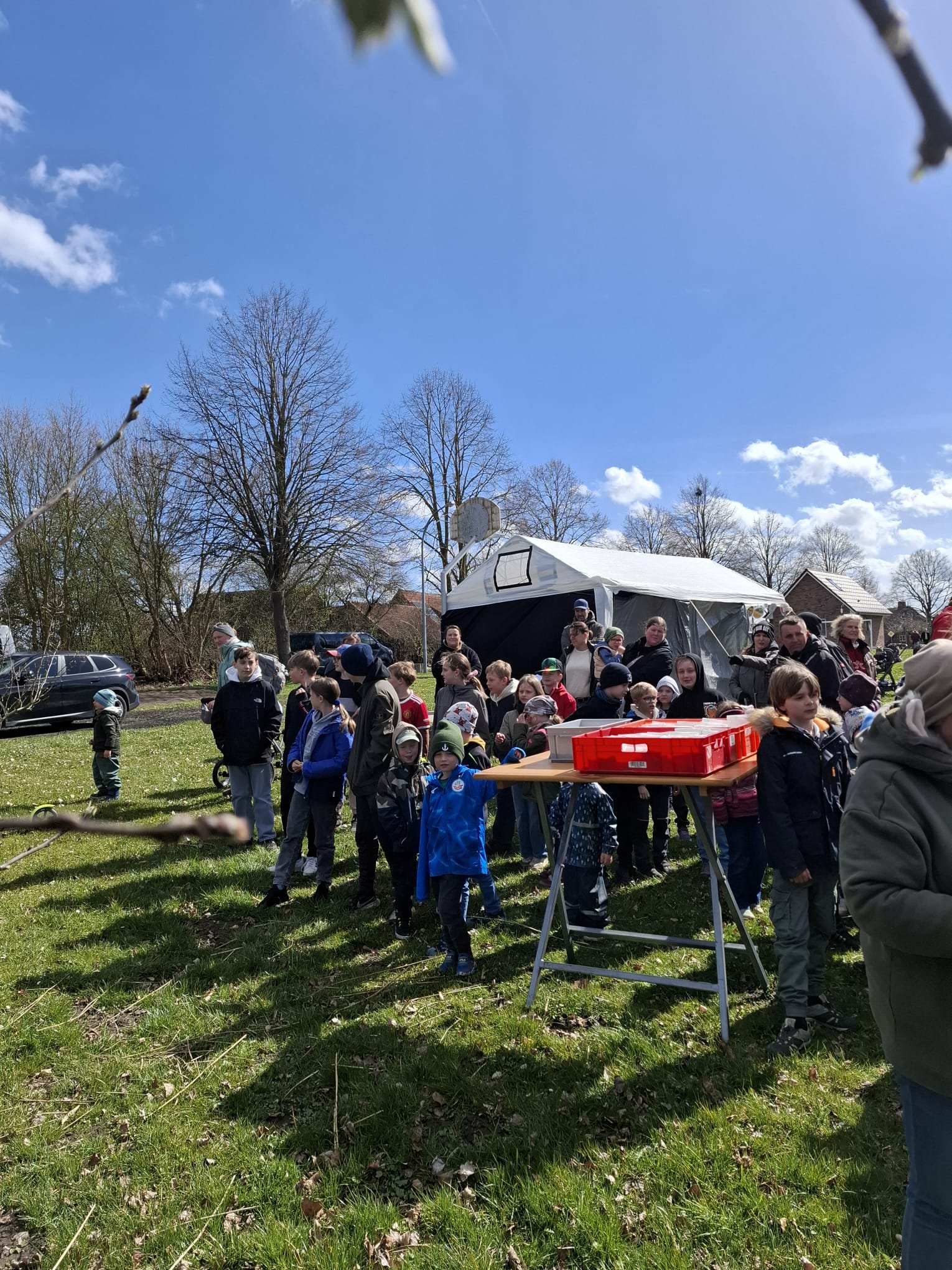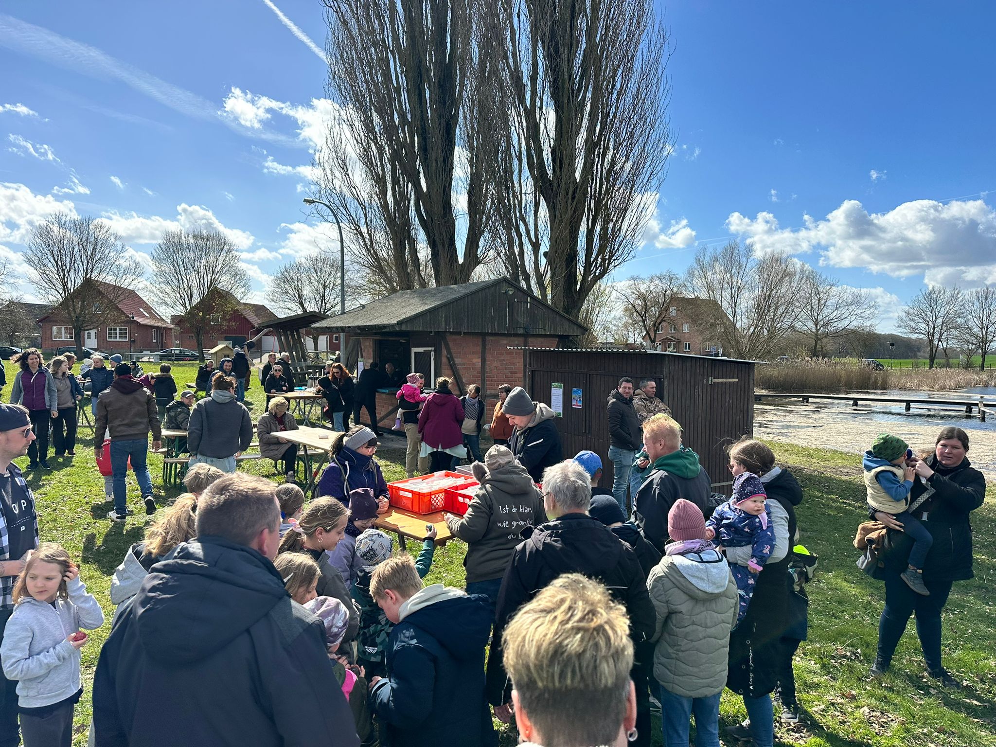 Das Wetter tat ein Übriges, bei Sonne stürmten gegen 14.00 Uhr heute mindestens 70 Kinder aller Altersklassen das Teichgelände!