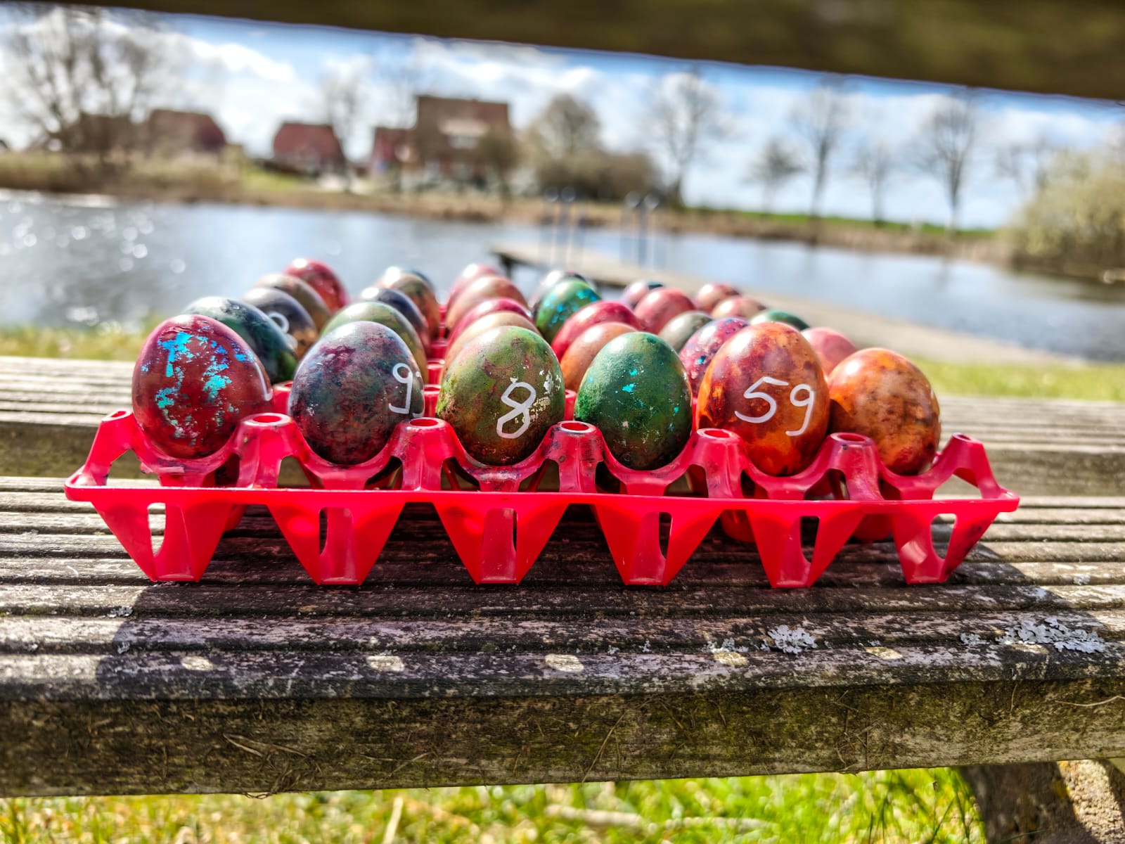 Schon Stunden vor dem Start hatten die Stellvertreter des Osterhasen Stress, galt es doch 102 bunt bemalte Eier im Namen und in Diensten des bekannten Hasen zu verstecken.