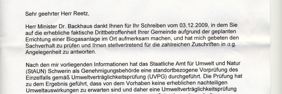 Heute hat das Ministerium im Namen des Ministers Stellung genommen zu den Briefen der Thandorfer.