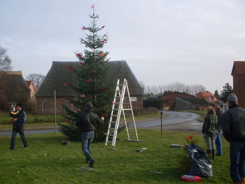 Heute wurde ein Weihnachtsbaum aus Heiligeland gesponsert und nach Thandorf gebracht. Hier wurde dieser aufgestellt und geschmückt. Pünktlich zur Dämmerung versammelten sich die Anwohner des Rondells und genossen den Lichterbaum und den Vorabend des 1. Advent bei Glühwein, Punsch und vielen Keksen.