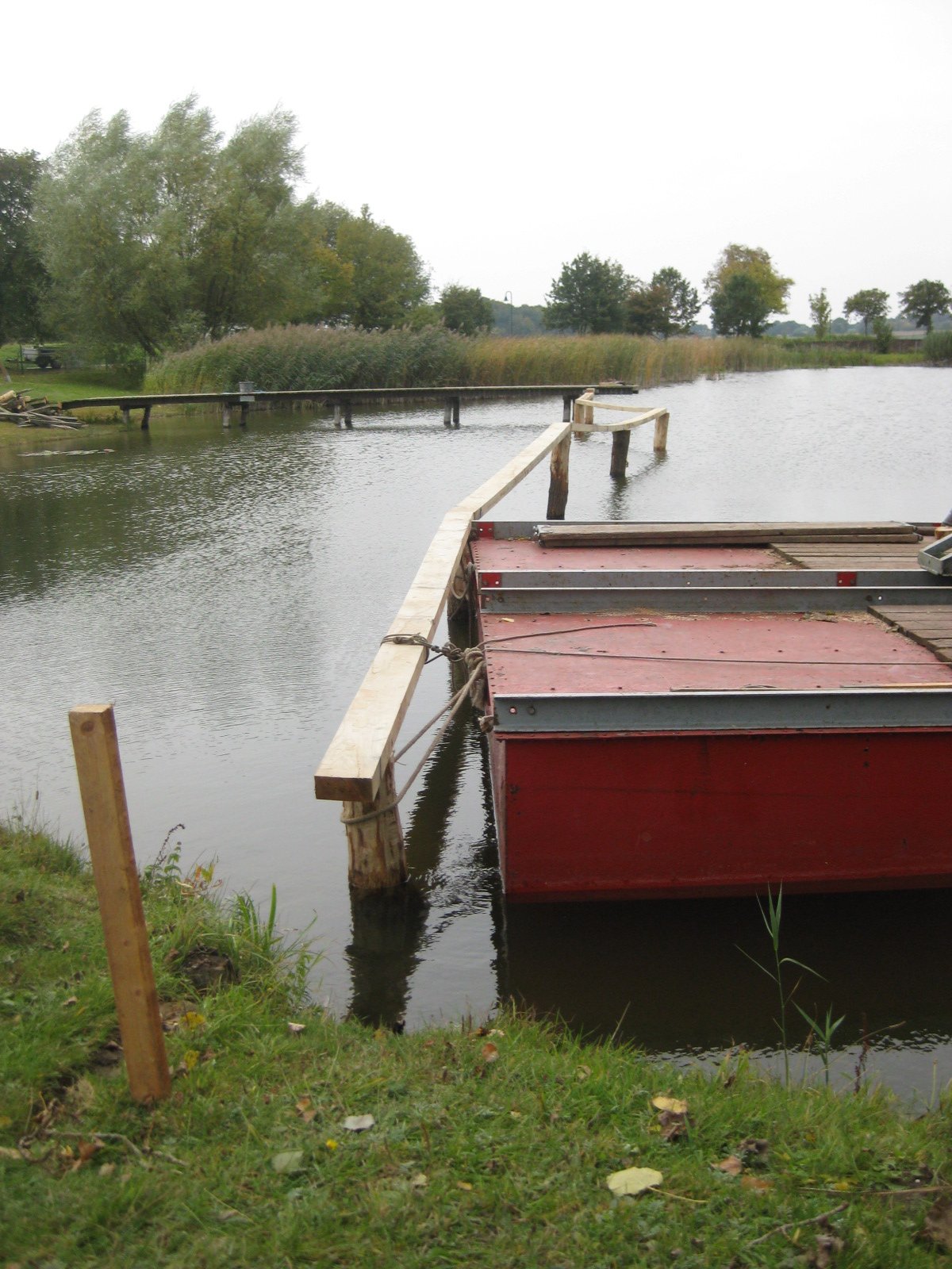 Der Steg ist fast fertig. Es fehlen noch der Anschluss zum Badesteg und zum Ufer. Nun ist am 3. Pfahl vom Steg aus die „Nordkurve“ deutlich zu sehen und am 5. Pfahl befindet sich der „Thandorfer Stegberg“. Damit sollte das überqueren dieses Steges per Schubkarre doch deutlich erschwert sein.