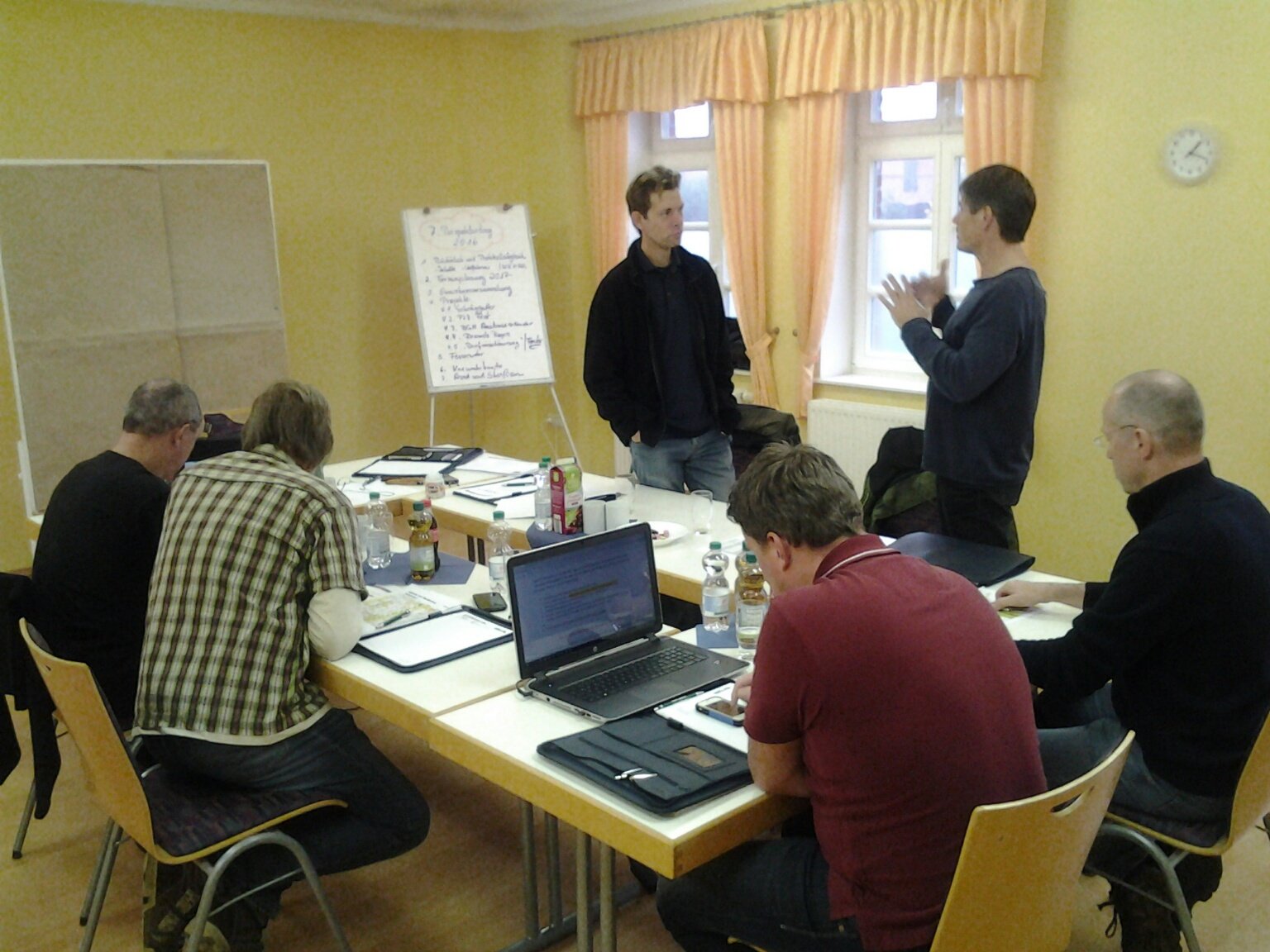Zum 7. Mal kam am gestrigen Samstag die Gemeindevertretung zu ihrer jährlichen Perspektivtagung zusammen, den ganzen Tag über standen begonnene, angedachte und mögliche Projekte für das Dorf im Zentrum der Diskussionen und Gespräche. Nachderm zunächst das sich dem Ende zuneigende Jahr inhaltlich und hinsichtlich der organisatorischen Abläufe wie Informationswege etc. kritisch reflektiert wurde, standen dann aktuelle und z.T. schon angelaufende Projekte (z.B. die "Schräggatter") auf der Tagesordnung, um die nächsten Schritte abzustimmen und festzulegen. Doch der Name "Perspektivtag" wäre falsch, wenn dann nicht neue, zukünftige Projekte breiten Raum eingenommen hätten. Die werden nun in den nächsten Wochen in ersten Arbeitsschritten konkretisiert, auf Machbarkeit überprüft und -wo notwendig- die enstprechenden Anfragen vorbereitet, um sie dann in die Tagesordnung der öffentlichen Sitzungen aufzunehmen. Einer Heizung hätte es im Dorfgemeinschaft in den Stunden kaum bedurft, der engagierte und immer auch wieder wohltuend kontroverse, aber immer ausnahmslos faire Austausch von Meinungen und Sichtweisen sorgte für hinreichend Wärme. Dabei stand zu jedem Zeitpunkt das Interesse für das Dorf im Vordergrund, so konnten alle am späten Nachmittag mit Zufriedenheit auf hervorragende Arbeitsergebnisse blicken. Ein erstes Ergebnis liegt bereits heute für jeden einsehbar vor: Die Terminplanung 2017. Sie kann unter der angefügten *.pdf-Datei eingesehen und ausgedruckt werden. Der Abend wurde, das ist inzwischen eine liebgewonnene Tradition geworden, bei einem gemeinsamen Essen, zu dem auch die Partnerinnen eingeladen waren, verbracht, dieses Jahr im Gewölbekeller des Bahnhof Rehna. Ein Tag und Abend im Zeichen der Gemeinde: Die Planungen stehen, das Jahr 2017 kann beginnen, die Weichen sind gestellt! Es wird ein spannendes Jahr werden - doch kennen wir es anders? Wir freuen uns darauf.