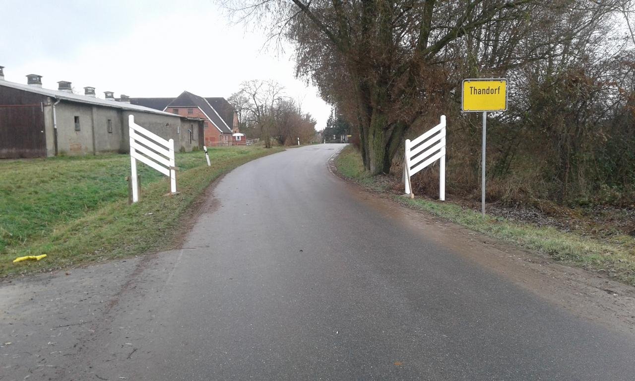 Wir stehen in den Startlöchern, um auch am -besonders gefährlichen- Ortseingang aus Richtung Utecht, sowie am südlichen aus Richtung Schlagsdorf die Gatter zu installieren, doch noch sind uns die Hände gebunden. Zwar bedürfen wir keiner Genehmigung dafür, weil die Gemeinde selbst innerorts die genehmigende Behörde ist, doch liegt das Eigentum des Straßenflurstücks beim Landkreis. So benötigen wir eine Nutzungsgenehmigung. Der Entwurf dafür liegt dem Kreis vor, nun warten wir auf eine Bearbeitung und hoffen, dass der Landkreis uns seine Unterstützung gibt und dieser Nutzung zustimmt. Dann können wir auch an diesen beiden Ortseingängen mittels der Schräggatter die Kraftfahrer zum "Fuß vom Gas!" animieren - die im Spielplatzumfeld laufenden Kinder werden es danken.