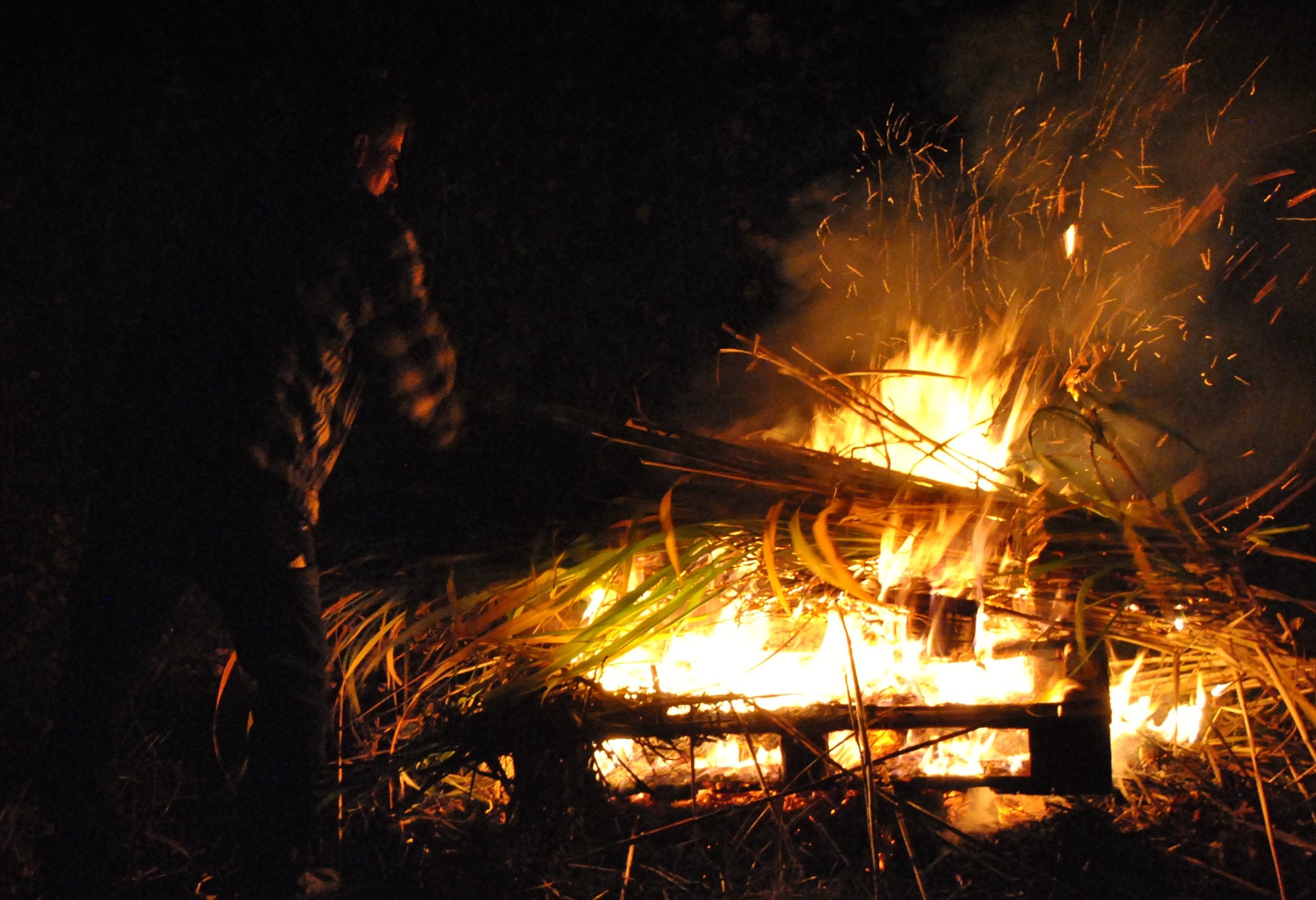 einige verschreckte Anwohner hatte sich am Feuer bei Kathie Kanzler versammelt, um dem Auftauchen von Halloweengespenstern zu trotzen oder sie gar durch den Feuerschein vertreiben zu können. Und mit gar wohlschmeckendem Glühwein tranken sie sich für die drohende Heimsuchung der Gespenster Mut an. Doch es war vergebens! Eine grauslige kleine Schar kam in bunten Kostümen, um unter dem Motto "Süßes oder Saures" ihren Tribut einzufordern. Aber Thandorfs Bewohner waren gewappnet: mit reichlich Süßigkeiten verstanden sie es, die Quälgeister milde zu stimmen.