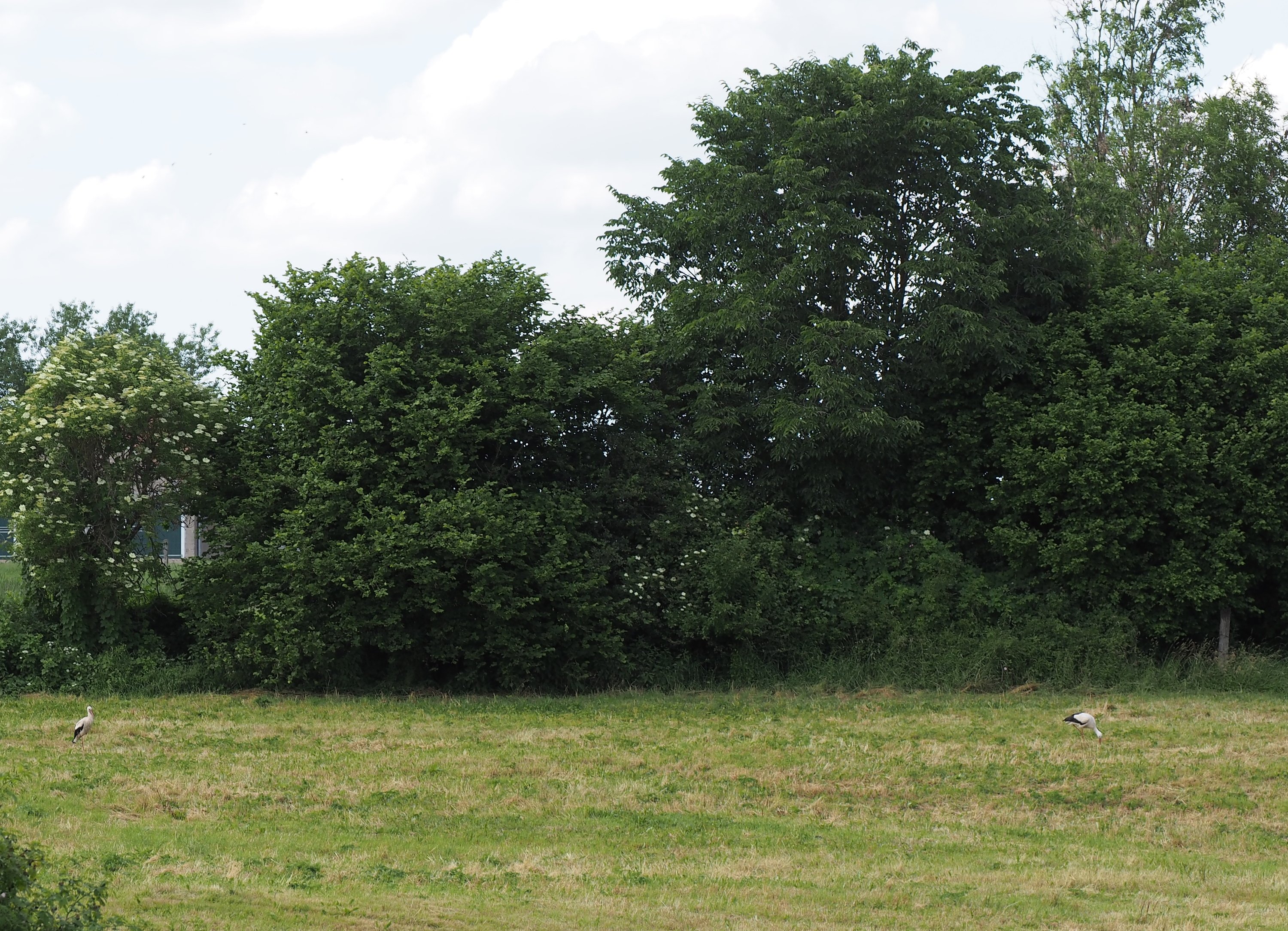 Leider steht das Storchennest in der Gemeinde auch in diesem Jahr wieder leer. Dennoch wurde die Wiese im Dorfkern von Thandorf, einige Tage nach der Mahd, heute von einem Storchenpaar angeflogen.