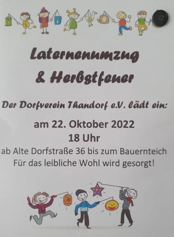 Was einst noch "Lichterfest" und "Grünschnittfeuer" genannt werden musste, weil Laternenumzüge und Herbstfeuer untersagt waren, kann endlich nun dieses Jahr wieder in alter und lieb gewonnener Form stattfinden, am 22. Oktober ist es soweit!
