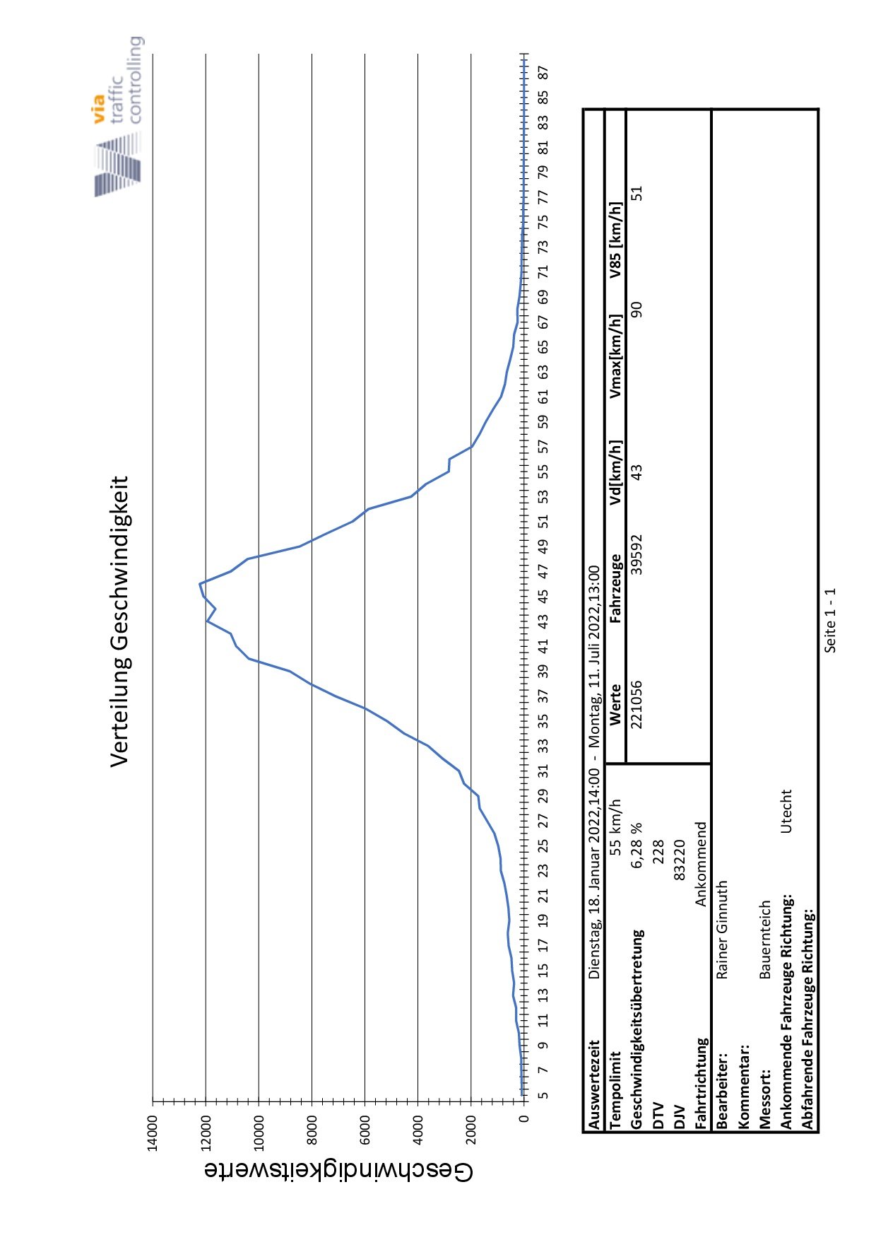 Das zeigt die nun vorliegende Auswertung des Messgerätes, das in der ersten Jahreshälfte am Ortseingang aus Richtung Utecht kommend stand.