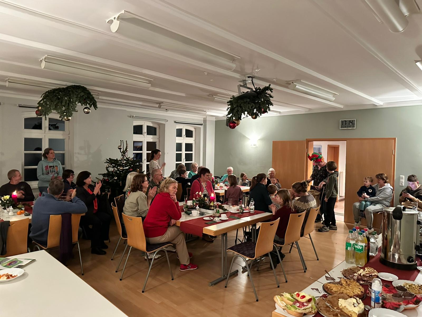Der Nachmittag begann mit einem gemeinsamen Kaffeetrinken. Die festlich gedeckten Tische luden zum Verweilen ein, und der Duft von frisch gebrühtem Kaffee mischte sich mit den süßen Aromen von selbstgebackenem Kuchen und dem Weihnachtsgebäck. Es wurde viel gelacht, erzählt und die besinnliche Zeit genossen. Besonders schön war, dass die Beteiligung in diesem Jahr wieder gestiegen ist, worüber sich der Dorfverein, sowie die Gemeinde Thandorf, als Co.-Gastgeber sehr gefreut hat.