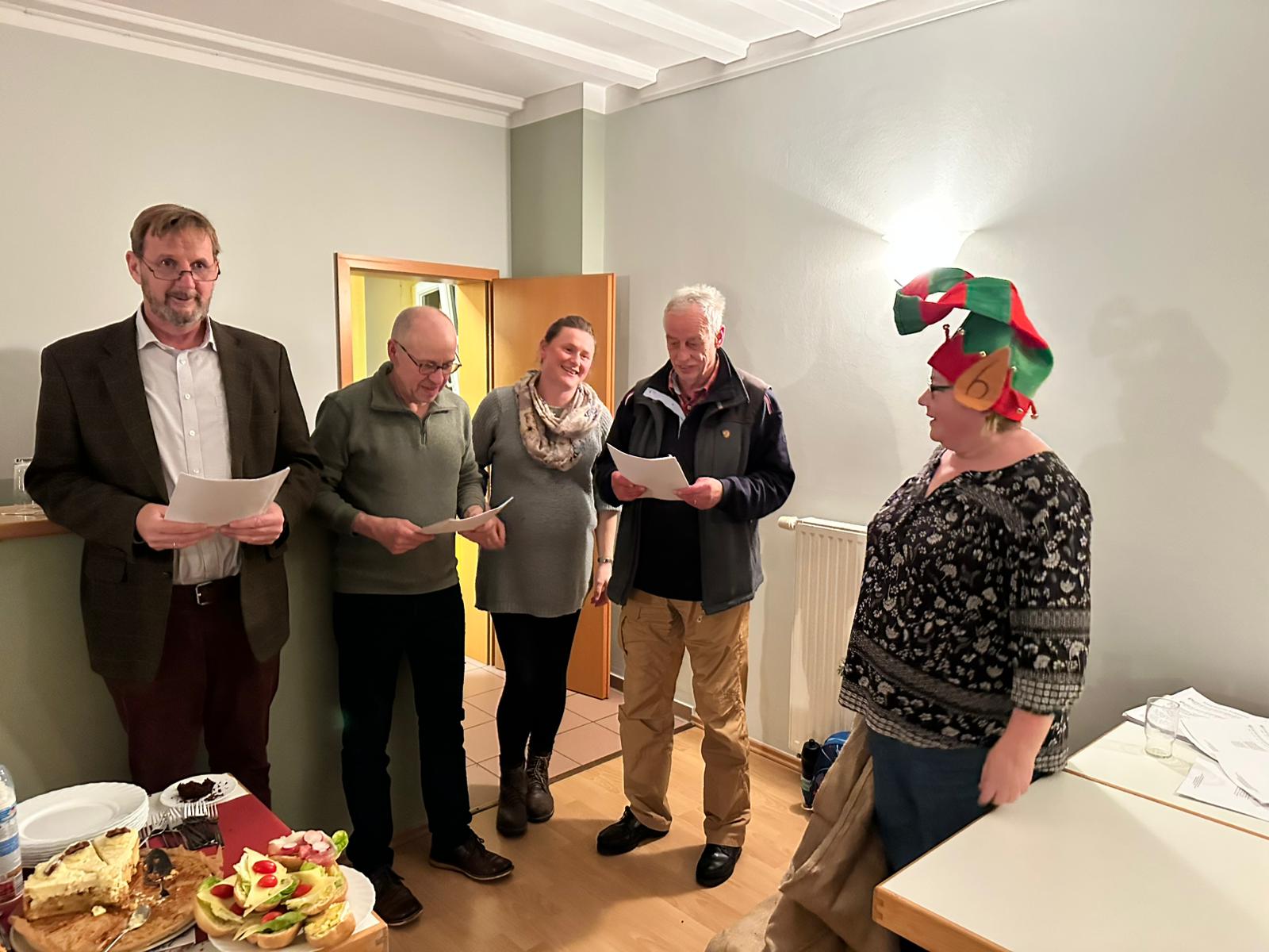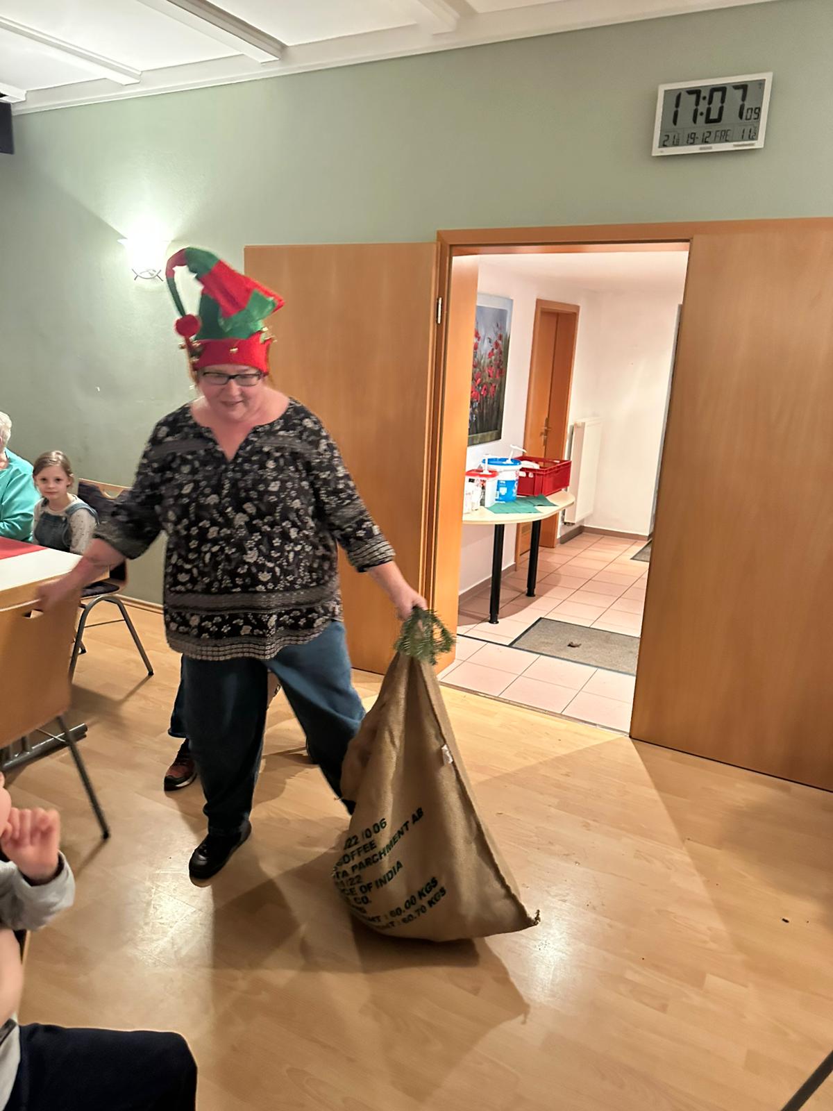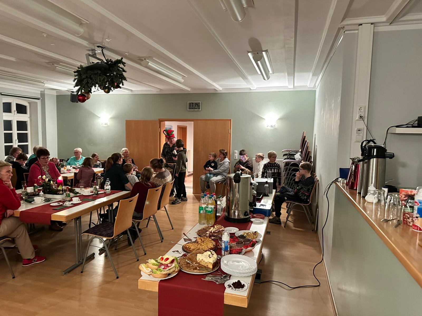 Nach dem Kaffeegenuss folgte ein weiterer Höhepunkt des Nachmittags: Nachdem auch die ganz jungen Thandorfer hinzugekommen waren, konnten auch kleine Präsente durch die eingesprungene Elfe (der Weihnachtsmann hatte leider eine Reifenpanne am Schlitten und konnte seine Reise nicht fortsetzen 😊) verteilt werden, und die Freude über die kleinen Überraschungen war allen anzusehen. Es wurde deutlich, dass es bei diesem Brauch nicht um den materiellen Wert ging, sondern um die Aufmerksamkeit und Wertschätzung.