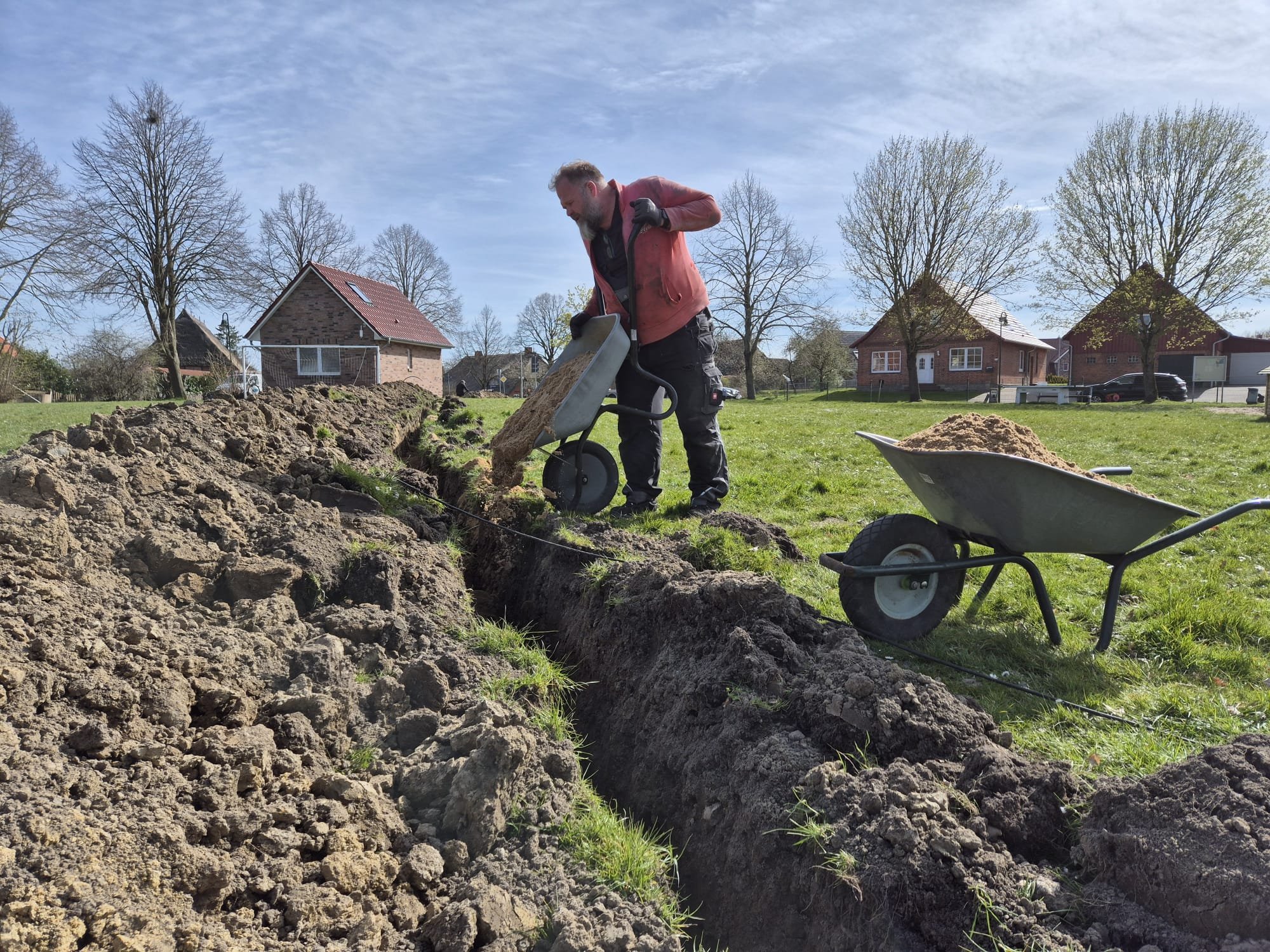 So geht bauen, wenn es mal überall so wäre. Pünktlich um 08.00 Uhr gestern am Samstag hieß es: "Bagger Start und klar bei Schaufel". In konzertierter Aktion war es das Ziel, zum einen den Kiosk für die Bewirtschaftung während Veranstaltungen mit Wasser zu versorgen sowie zum anderen Strom und Netzwerkkabel für den kommenden Eisautomaten zu verlegen.
